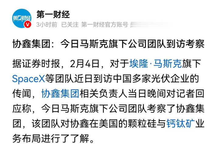 晚间,爆出新闻马斯克团队与协鑫集团也进行了操办。