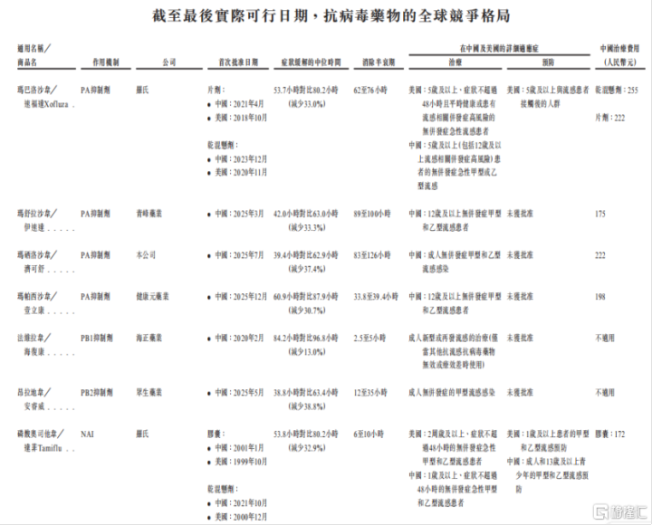 中枢抗流感药物已上市,翌日的竞争相貌正在变差