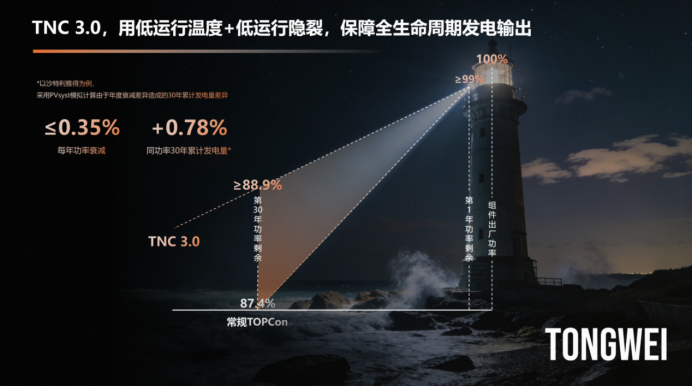 通威TNC3.0回复了面前光储协同模式下对组件的三大期待:高功率输出、高抽象发电才气、高可靠性。