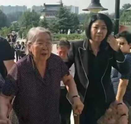 81岁的李敏,在男儿孔东梅的搀扶下,也来送别王海容。