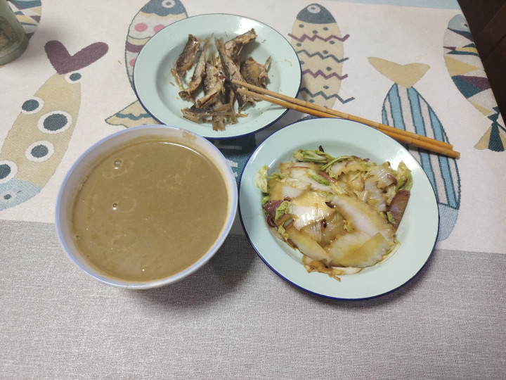 因为中午要在旅舍吃饭,不免要喝点酒多吃点菜,上昼骑了电动车,也莫得什么敞开,早上就只喝了一小碗豆乳,吃了两条小鱼,吃了一些酸辣白菜。