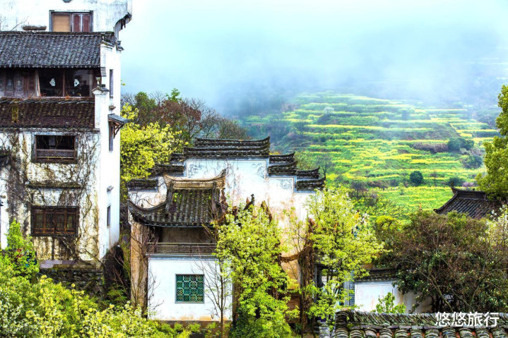 三月的婺源,除了油菜花,古村里还开满了梨花、桃花、樱花。