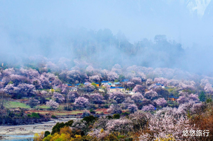 雅鲁藏布大峡谷,远望南迦巴瓦峰。索松村野桃古树,枝端挂满花苞。赶赴波密,一起赏玩帕隆藏布江好意思瞻念,散步桃花沟,百年野桃树与雪山相映。嘎拉桃花村,藏式民居、青稞田与桃花交汇,旷野感拉满。