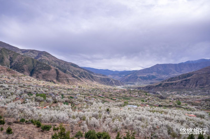 早春三月,冰雪消融,金川河谷两岸的70余万株梨花竞相洞开,与色调斑斓的藏式村寨交相照映,宛确乎践版“世外梨源”。