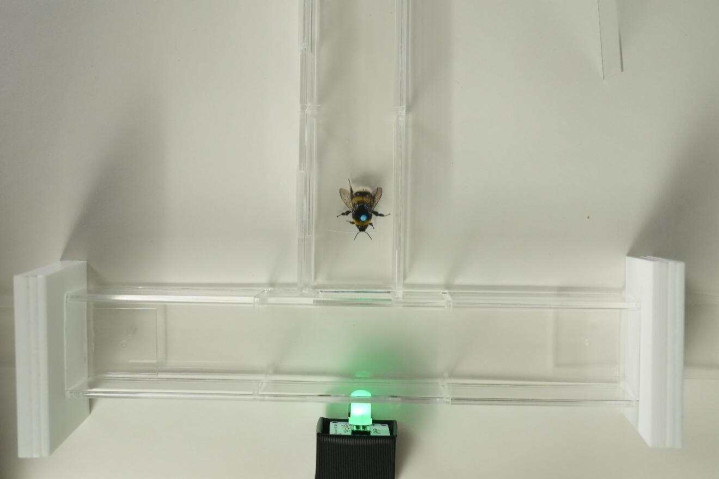 在这一执行中,熊蜂首先在T迷宫中学习两种不同的振动节律模式,感受到其中一种振动模式时,应去往左侧得回糖水奖励;感受到另一种模式时,则应去往右侧得回奖励。收尾自大,熊蜂能够奏凯学会将不同的振动模式与把握取舍关系起来。完成教师后,洽商团队莫得络续使用振动刺激,而是改用时辰结构等价的视觉闪光模式进行测试。令东说念主诧异的是,熊蜂仍然能够作出正确取舍。