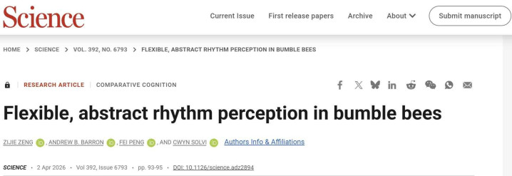 继此前揭示熊蜂的情感及情感传染机制后,4月3日,海外顶级学术期刊Science(《科学》),再次发表了南边医科大学粤港澳大湾区脑科学与类脑洽商中心全职PICwynSolvi老师与彭飞老师团队联接完成的洽商效果Flexible,abstractrhythmperceptioninbumblebees(《熊蜂活泼、概述的节律感知》),象征着南边医科大学在动物融会与比拟心理学洽商限制再次取得海外擢升的冲破。