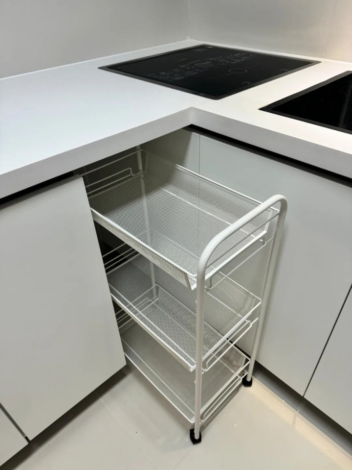 在装修作念地柜时,拿出一格的位置,毋庸装门,就放一个小推车,专门收纳买回想的果蔬,空气运动,拿取绵薄。