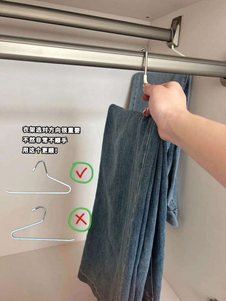 衣柜里十几二十条裤子,惯例挂法太占地点,叠起来又容易皱。