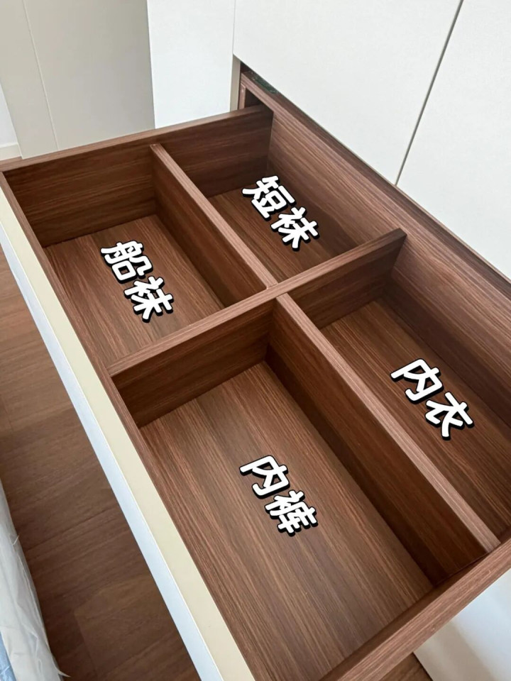 在定制柜子时,就让师父在抽屉里加上一两块活动的隔板。本钱的确为零,但一会儿就把一个大抽屉,分红了内衣区、袜子区、领巾区。