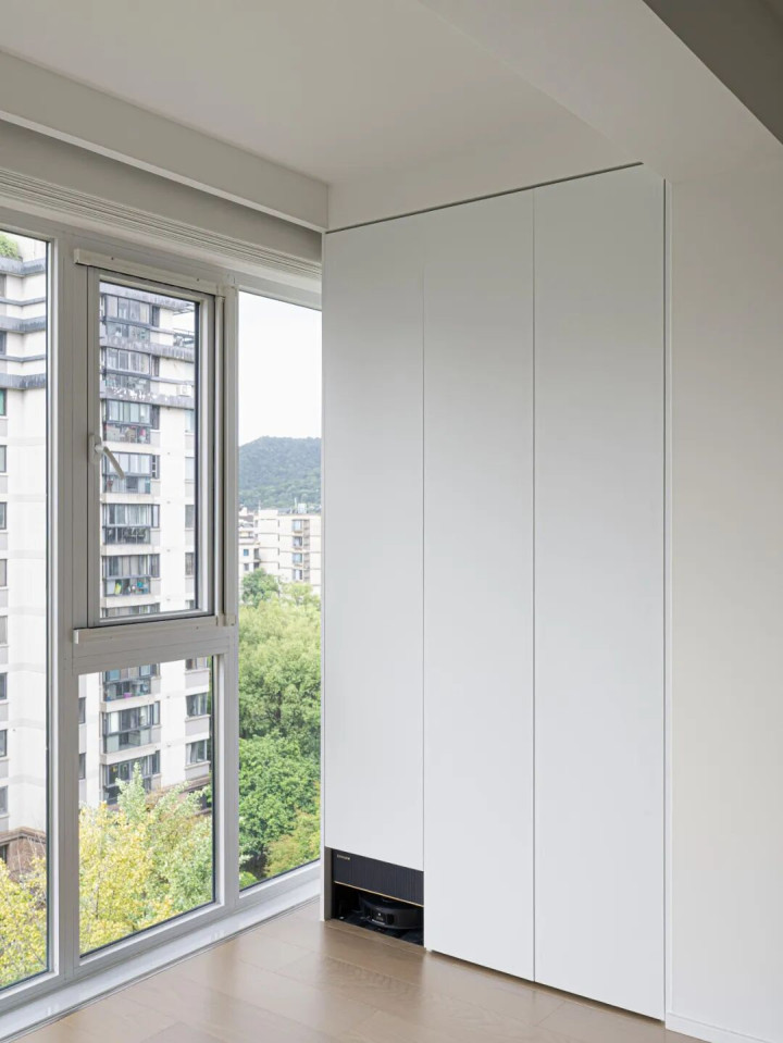 若是阳台有坎坷水,把扫地机器东谈主基站也不错塞进这种柜子底下,柜门底下留出一条缝让它摆脱收支。