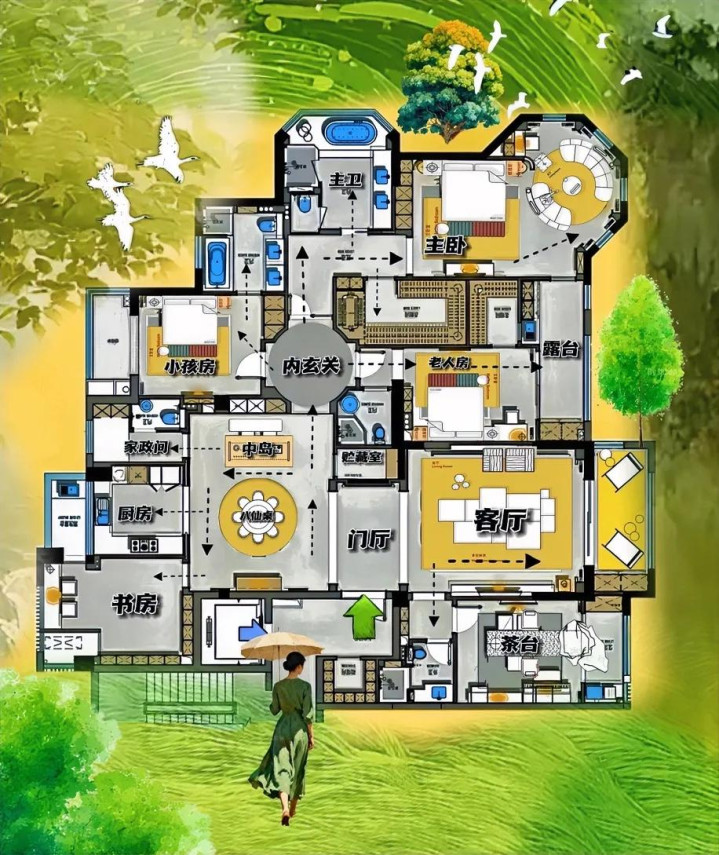普等闲通的,三居室,尽发好东谈主感,嗅觉被谁?救赎了,圆玄关,如故方门厅,面积不及,悦目凑,315㎡俏皮又通透。