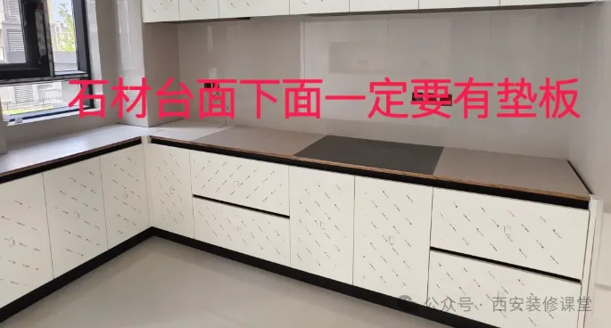 84.厨房石材下方一定是作念的垫板,而不是多样架空的龙骨,不然更不防裂,反而起到副作用。垫板只消和柜体材质同样,无所谓神态,后期压住看不见,而况这个是免费作念的。