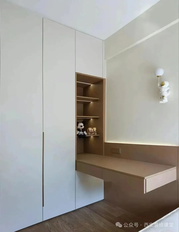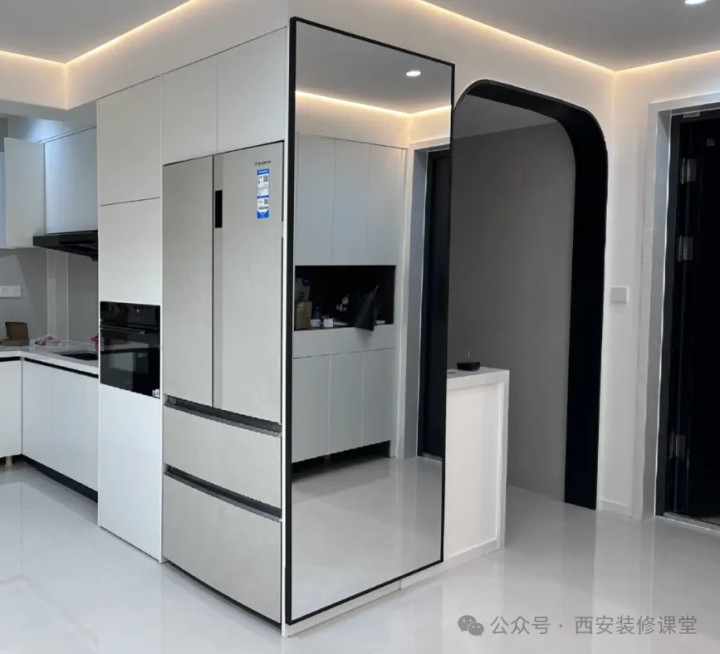 33.餐边柜网络过说念,一定要郑重见光板的作念法,最好神态与墙体神态一致,一朝不一致入住就会有神态上的缺陷,此时不错经受遮盖或者全身镜来解决神态的缺陷。