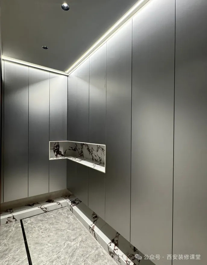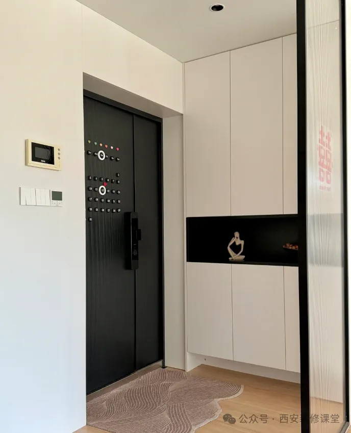 5.鞋柜挨着入户门套的时间,若是鞋柜厚度不够,就不错糟跶门套毋庸作念,舒服鞋柜收纳为主。6.入户作念不作念门套取决于鞋柜离门口的距离,若是距离近的话,进门换鞋会手扶墙体,此时最好作念,反之不要作念。