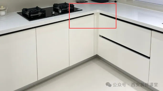 104.橱柜地柜与高柜连接,一定郑重石材不要杰出,与高柜柜门一定要平皆