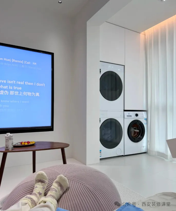 176.阳台若是有烘干机,小件一稔曝晒的话,不错作念侧面晾衣架,空间大也不错径直在阳台一边分割寂寞的洗衣间