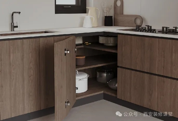 111.橱柜转角诈骗不要用任何五金,用财富解决问题还要想象师干啥?一定要用免费的层板错位内缩作念法,完结橱柜转角的最大化诈骗价值。