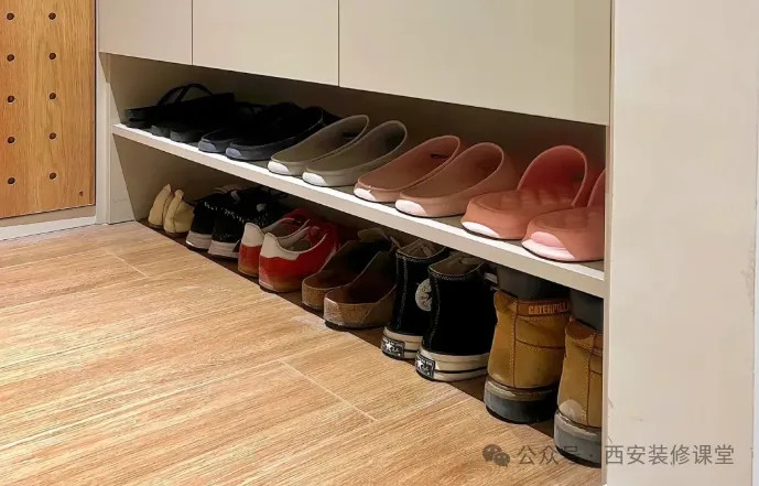 8.若是入住东说念主多,鞋柜下方放鞋最好两层;东说念主少也不错两层,一层居家鞋子,一层特意抛弃室外鞋子。