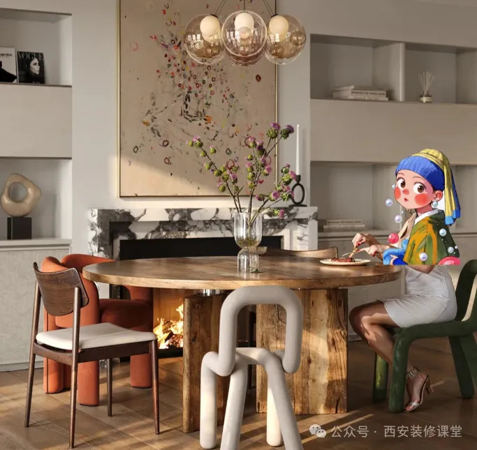 30.餐桌上方一定经受吊灯营造氛围兼顾照明,而况最好作念辅助光源,幸免晚上餐厅周围黯淡
