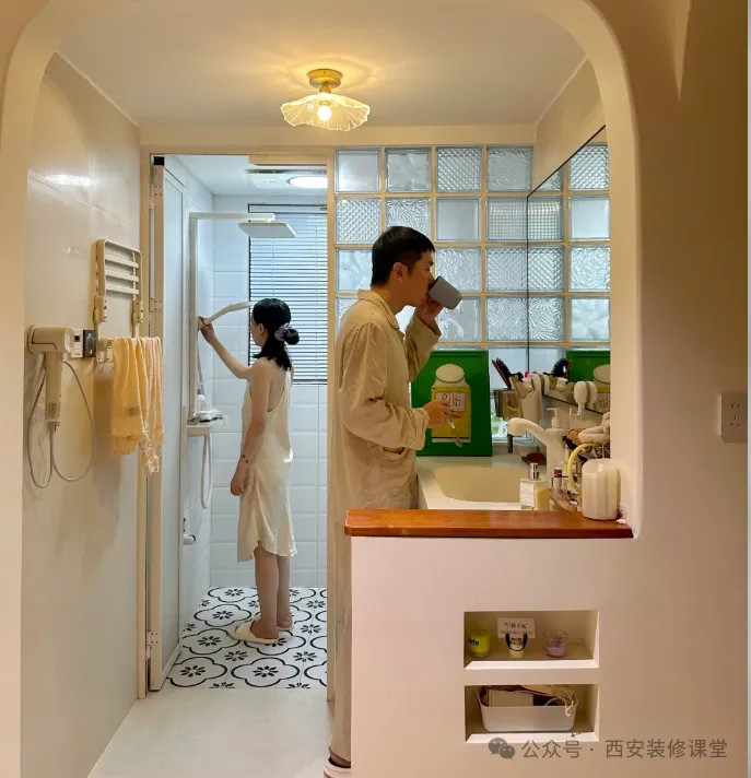 159.浴柜干湿分离不要冠上加冠作念半截墙,浪掷空间,若是秘密不错砸掉墙体一说念作念浴柜