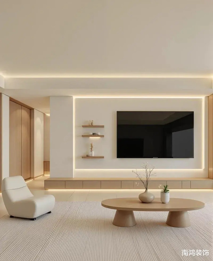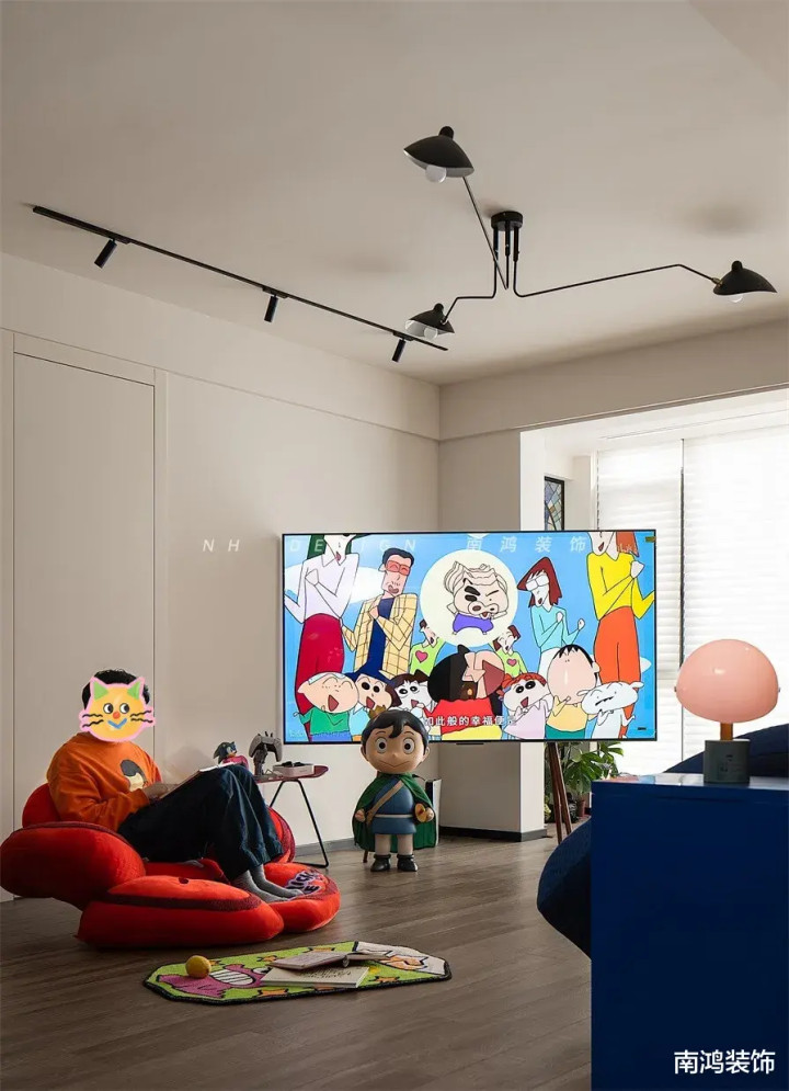传统客厅围绕电视-沙发-茶几“三件套”张开,而当代家庭对电视的需求有技艺莫得那么高,那么咱们就不错凭据实质情况,作念这种冲破固定框架的布局。