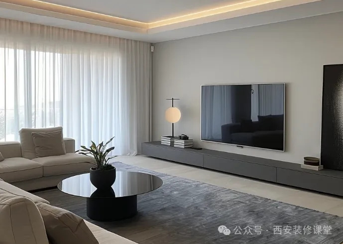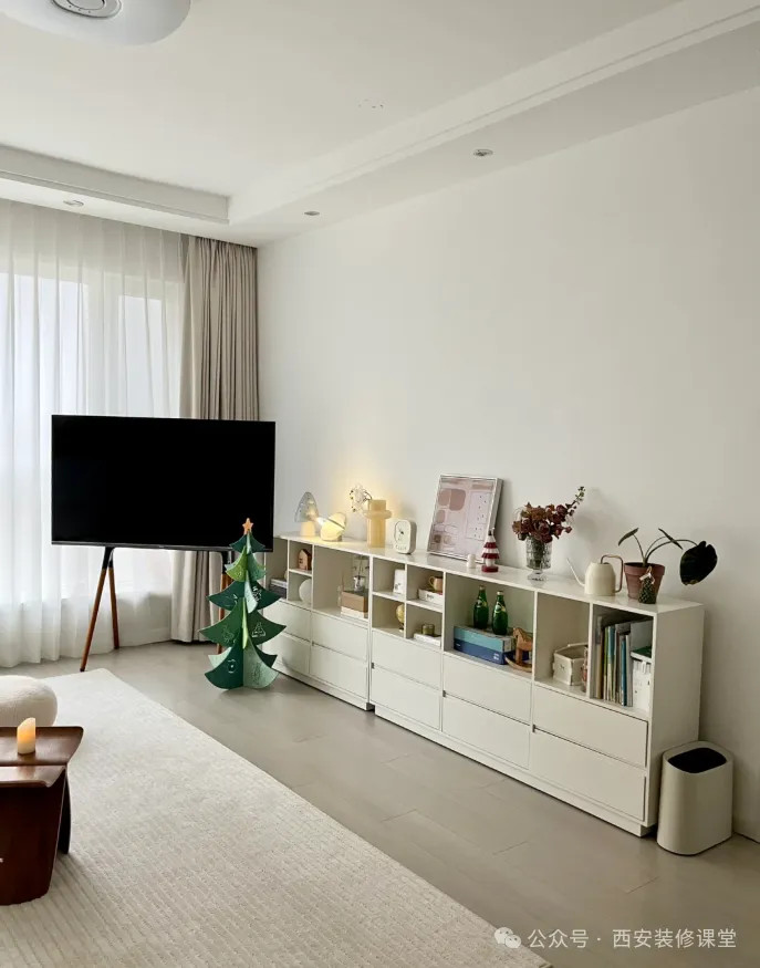 电视墙什么王人不作念,平直挂电视知足功能即可,比那些堆积建材把家里装修成仓库的更有价值。