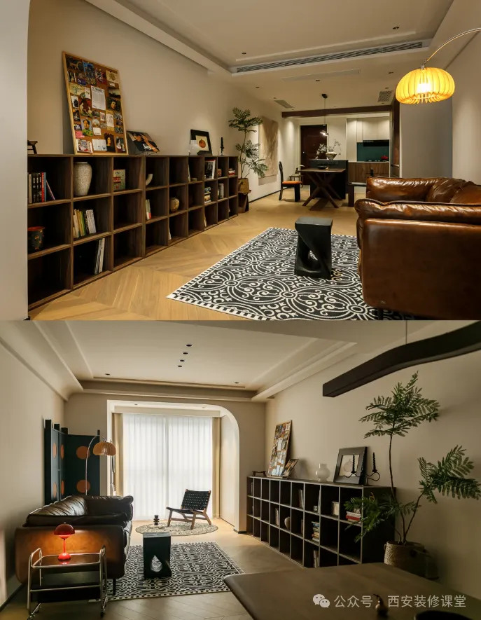 不错遴荐更大的矮柜书橱,代替原有电视柜,解放度更高,一半顽固一半怒放,完毕收纳和竹素的收纳,若是家里有小孩,怒放区不错知足孩子玩物的收纳。边际支架电视不错松驰迁移知足文娱即可。
