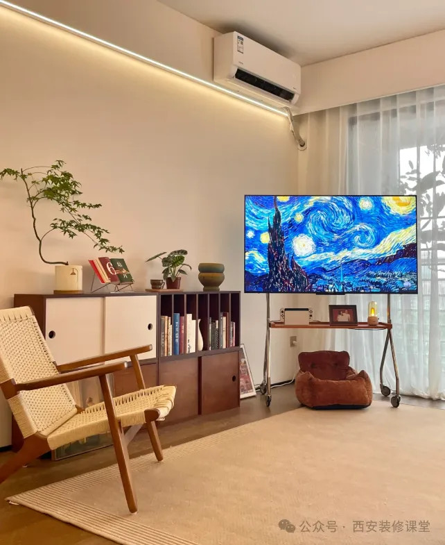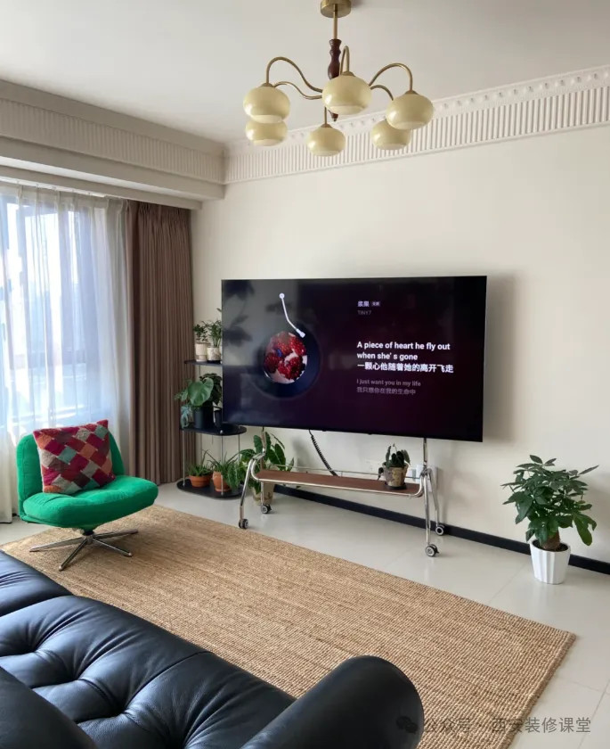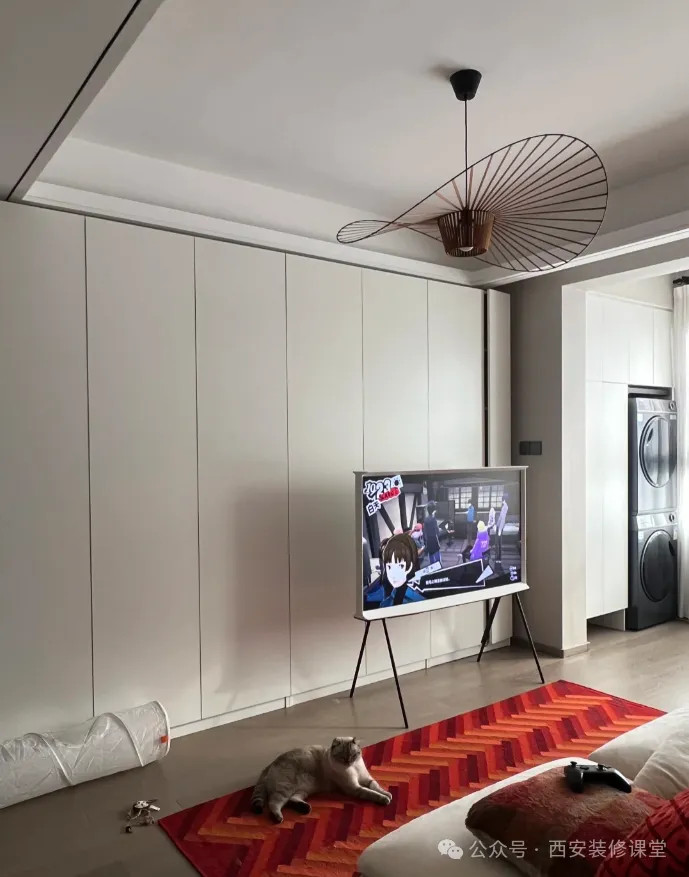 电视墙什么王人不作念,就放了支架电视知足功能即可,况兼不错松驰迁移,更解放。