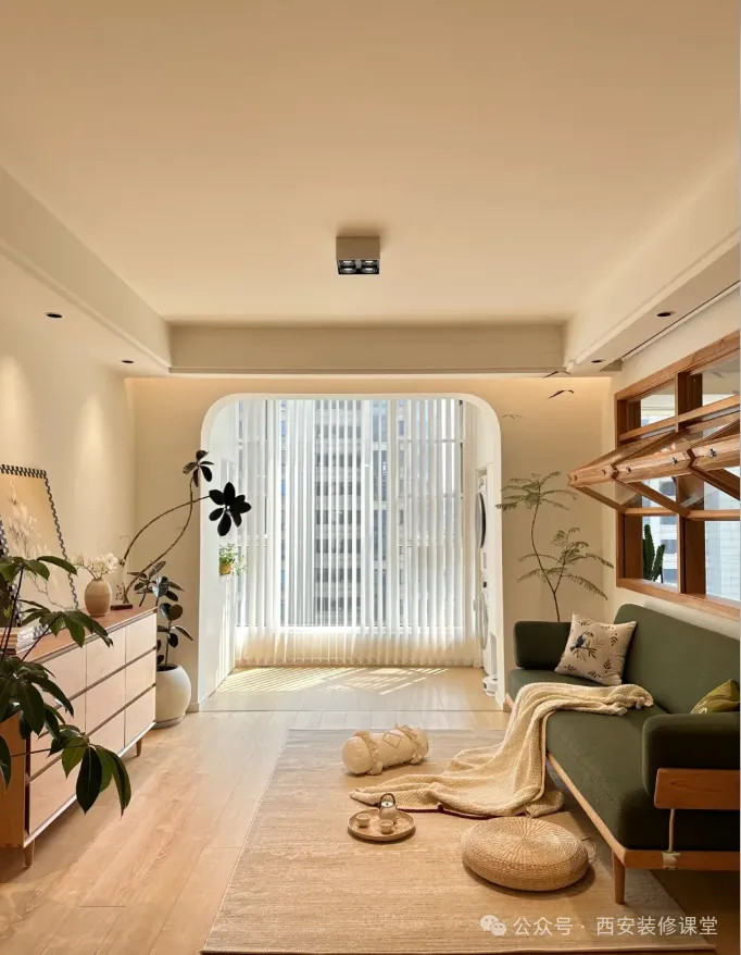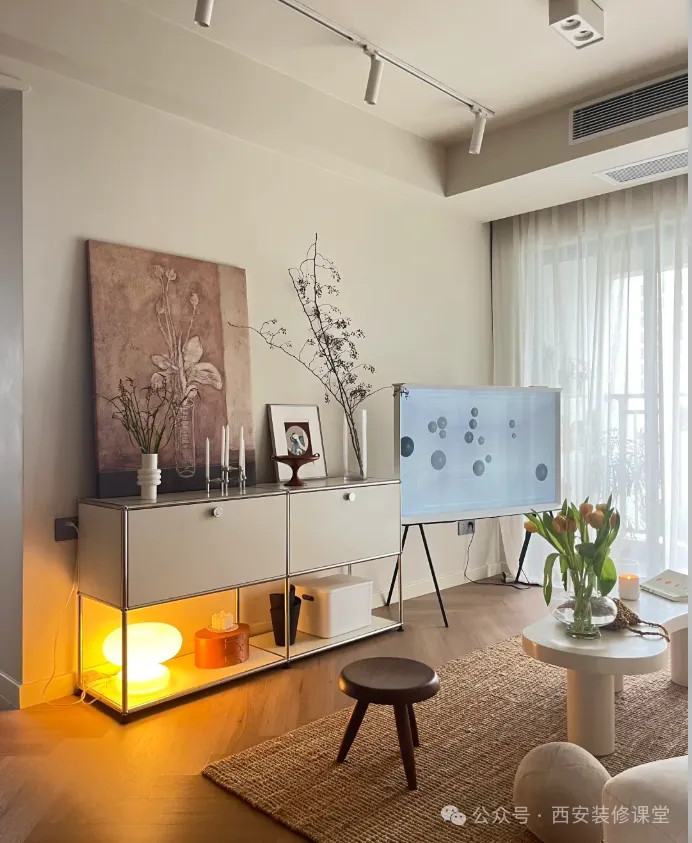 客厅小,电视墙更小,什么王人不作念,遴荐迁移电视知足功能即可,减少牵扯感,完毕小户型客厅的价值。