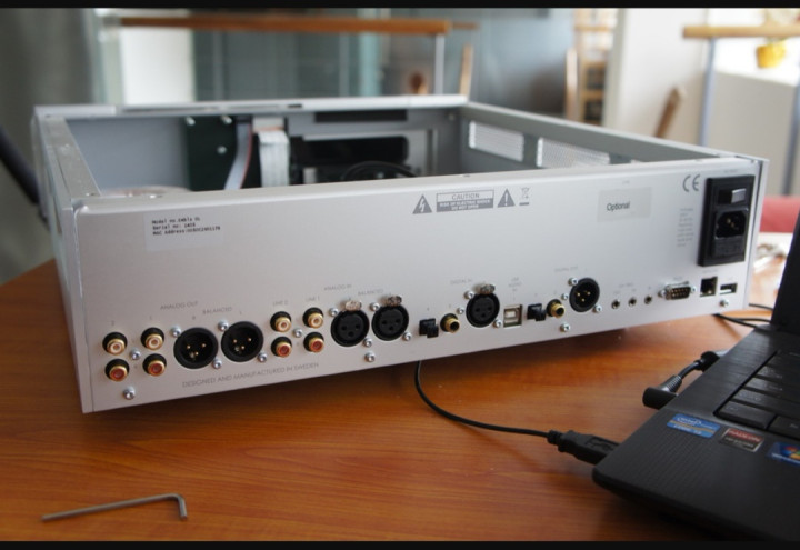 2012年EMBLA又出了一个不带光驱的版块,叫EMBLA DL,价钱两万多元。其里面见下图。这个机器接口很丰富,也可以动作一个纯DAC去用,声息照样很可以。EMBLA应该说带给我好几年的情愿时光,是一台值得缅念念的旧式数播妥协码器,声息也比Squeezebox好好多。说它“旧式”是因为其时限于互联网和音乐流媒体的景色,它的手机操控App是要付费购买的,我莫得买,就用原配的金属遥控器把持。另外,星空app登录它是不复旧“音乐流媒体”的,即是个腹地音乐播放器。畴昔也没什么音乐流媒体职业,发热友们都是玩合手轨,然后相互拷贝文献。