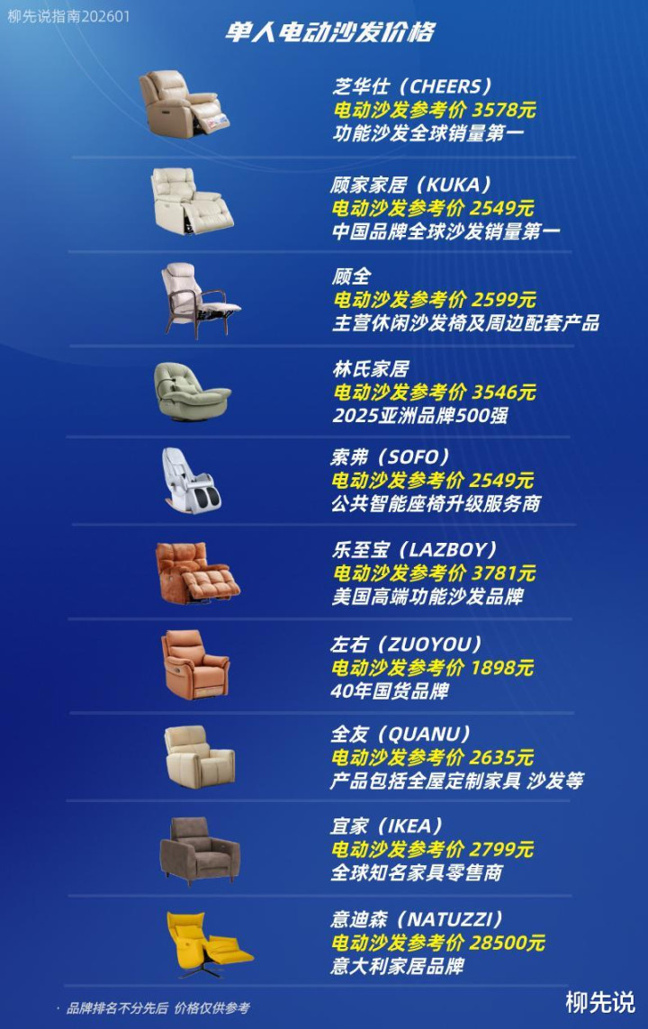 中高端商场(3000-20000元东谈主民币) 体现了品性与功能的均衡。在这一价钱区间,浮滥者不错期待更优质的材料(如头层牛皮、高弹性挂念棉)、更综合的作念工、更稳定巩固的电机系统以及更丰富的功能设立,关系品牌有芝华仕、林氏家居、乐至宝和宜家等。其中,芝华仕声称是功能沙发全球销量第一。